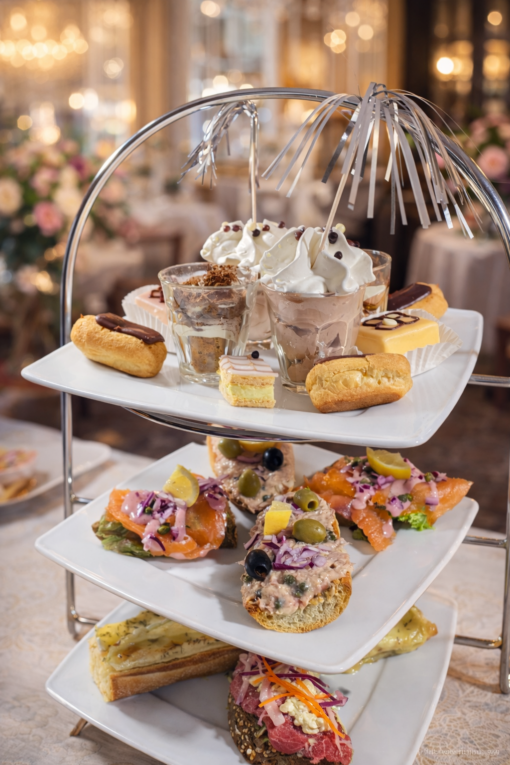 Onze high tea bij Brasserie Murphy’s in Sittard bestaat uit een mooie etagère met een mix van hartige en zoete lekkernijen. Je kunt onder andere genieten van: